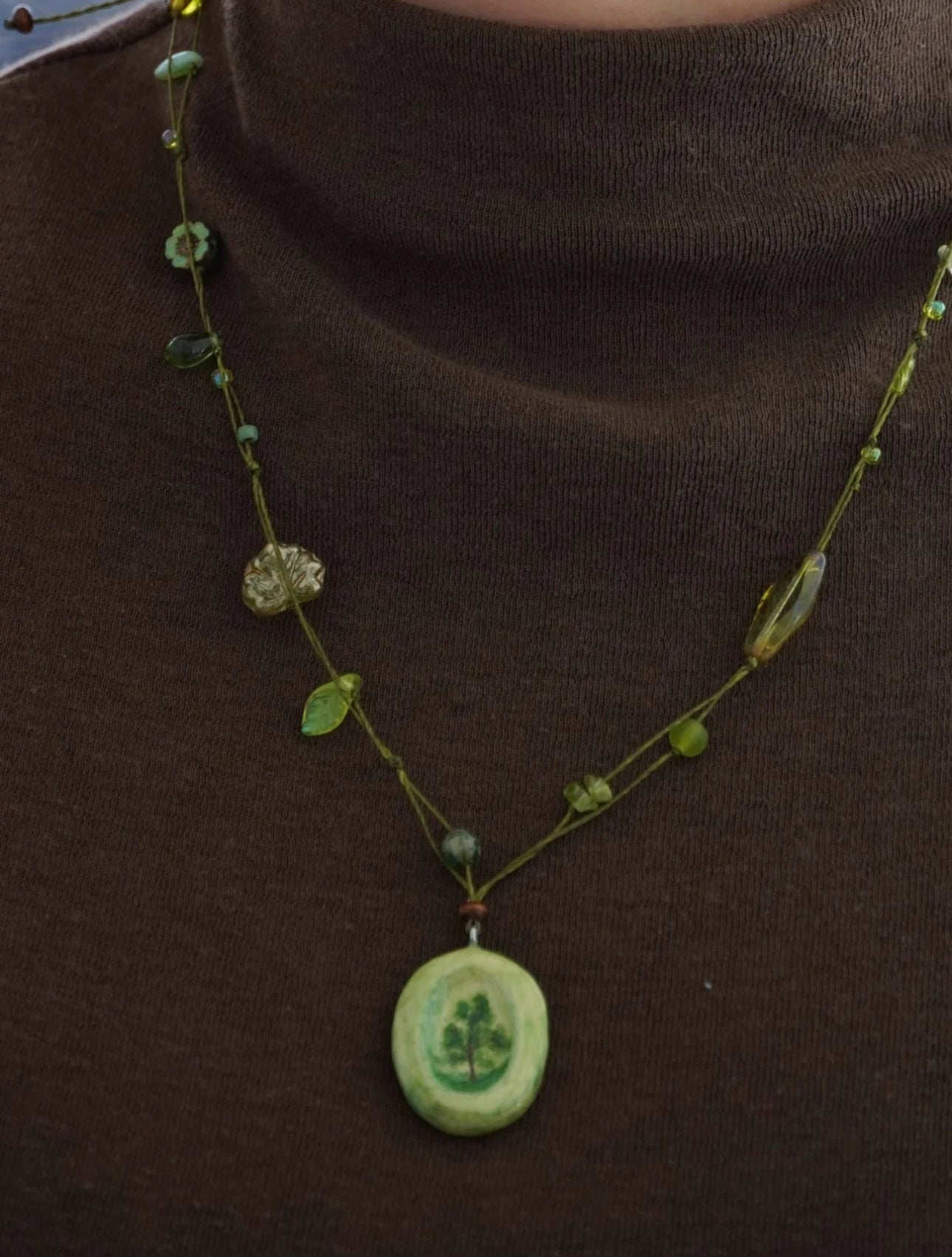 Wild Tree | Original Handmade Polymer Clay & Czech Bead Necklace with Brazilian Wax Cord